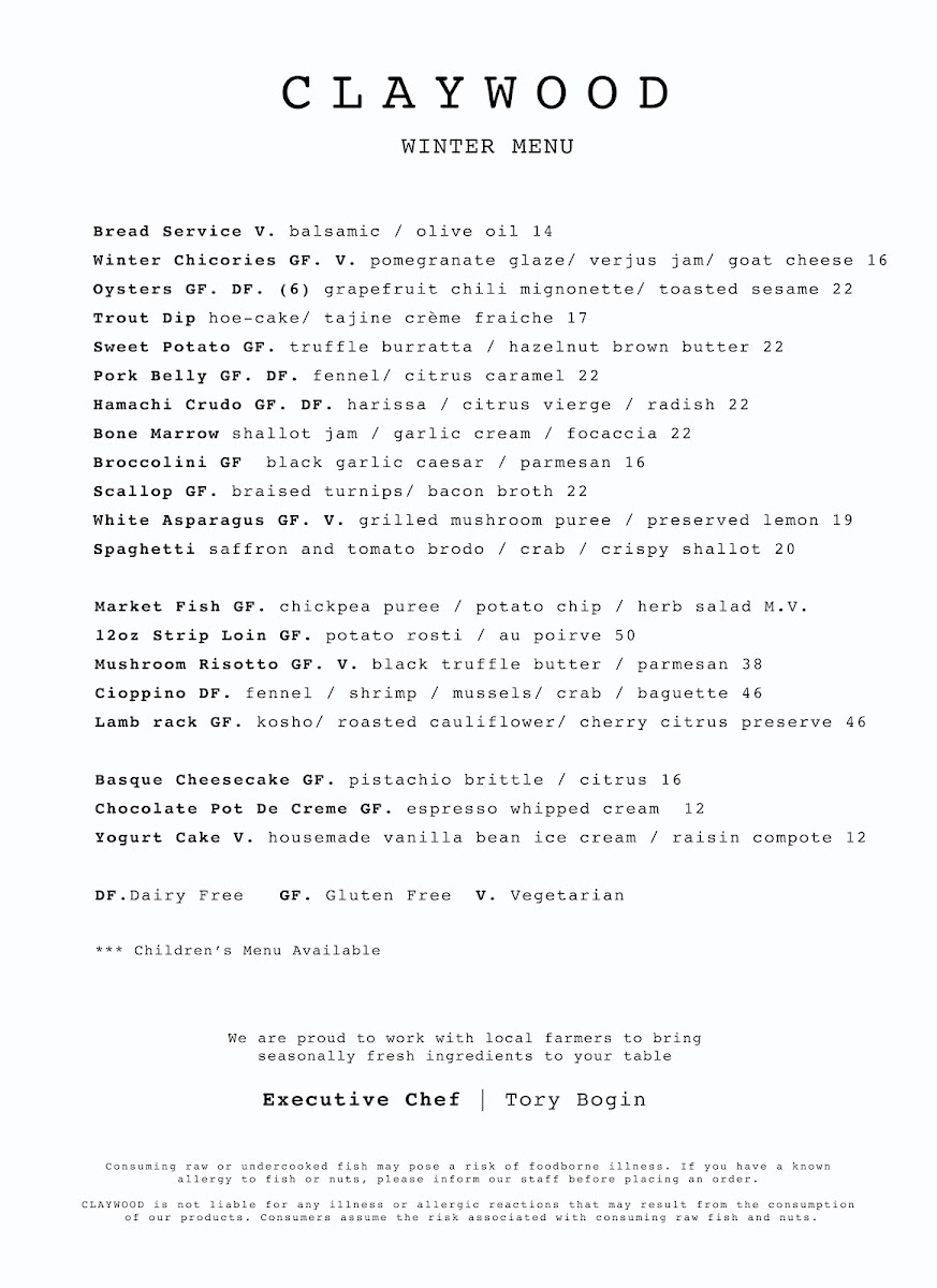 Introducing the menu at Claywood, a culinary gem in Hendersonville, NC, is an invitation to a delightful experience. Helmed by Executive Chef Tory Bogin, the menu showcases a remarkable blend of seasonal, locally sourced ingredients, artfully crafted into dishes that celebrate flavor and creativity.
